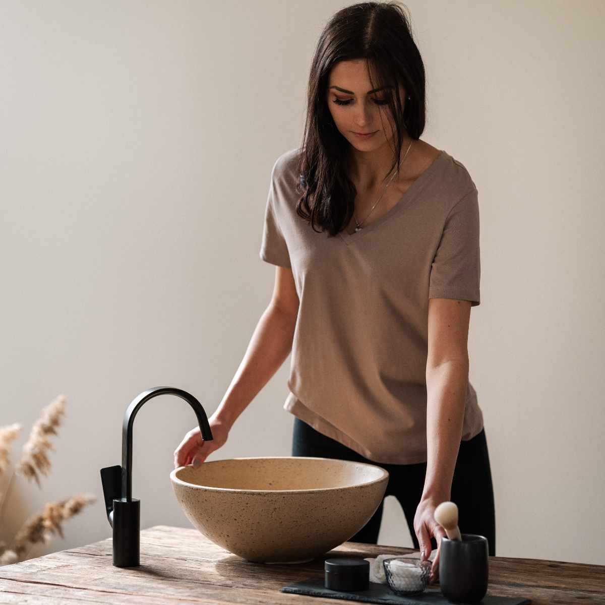 Durch unsere DEELURE-Versiegelung sind die Waschbecken dauerhaft geschützt und leicht zu reinigen. Bei der Reinigung gibt es daher keinen großen Unterschied zu herkömmlichen Waschbecken.